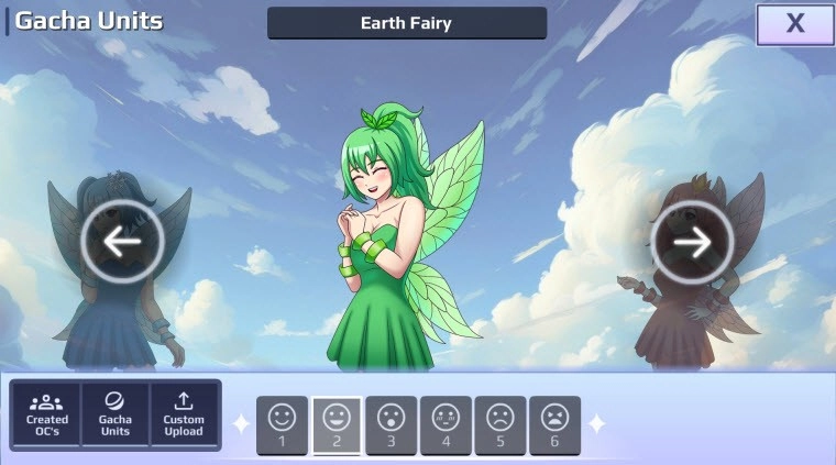 4、点击界面底部的“characters”就能进行角色选择,左右滑动可切换至其他角色,也可以点击角色界面底部的表情图标,为角色添加各式各样的表情。