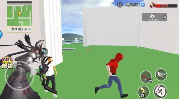 2、借助虚拟按键能够实现移动、奔跑、跳跃、拉钩锁等一系列操作。