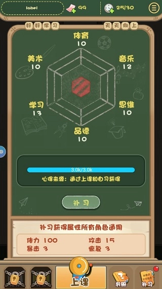 3、借助补习能够提高角色属性,而这些属性是可以在不同角色之间通用的。