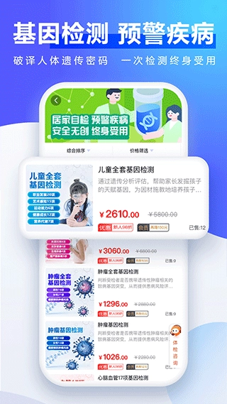 1、为个人与家庭量身定制丰富多样的体检套餐,便于用户便捷完成检查预约
