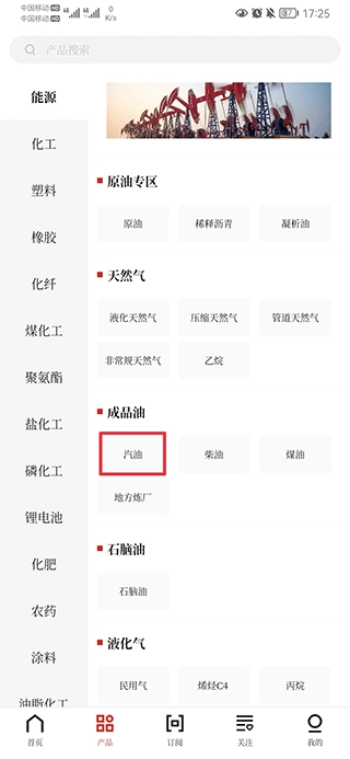 二、选择你想要订阅的产品,如汽油。
