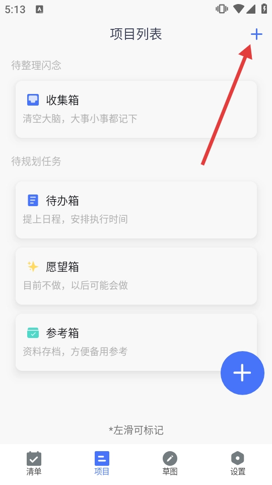 2、在项目列表页面,点击右上角的【+】按钮,即可进入用于新增项目的“创建项目”页面。