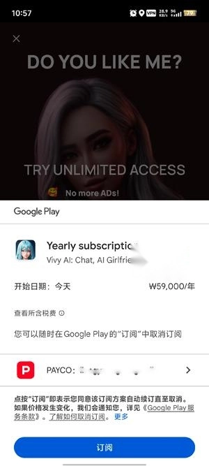 在高级版订阅界面选择你需要订阅的类型,点击继续。