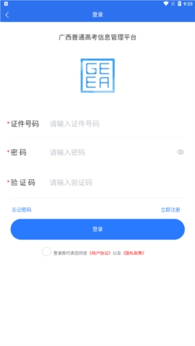 1.在本页面安装广西普通高考信息管理平台至客户端。打开,首先进行考生账号登录,没有账号的用户点击立即注册账号。