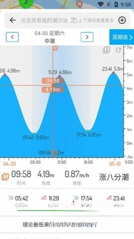 1、您能够借助直观的图表查看每个地点的潮汐曲线,其中横坐标代表时间,纵坐标代表潮水高度,呈现方式简洁清晰。