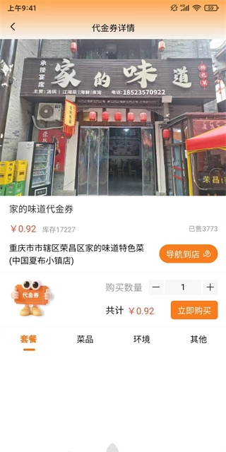 3、选择一个自己想要购买的代金券,可以点击进入查看到店铺详细的位置以及菜品、套餐等信息;